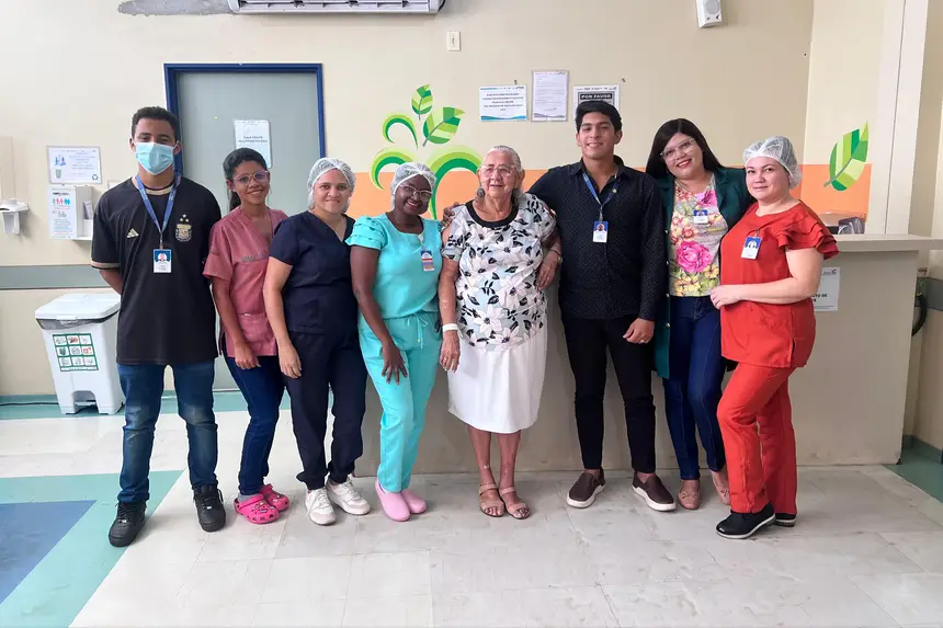 Há nove anos em funcionamento, a Unidade de Alta Complexidade em Oncologia Dr. Vitor Moutinho, em Tucuruí (PA), tem se destacado pelo impacto positivo na vida de pacientes oncológicos de toda a região. Nesse período, já foram realizados milhares de atendimentos, incluindo consultas, exames, retornos e procedimentos. Muitos pacientes seguem em tratamento e cada vez mais próximos da cura. Um dos exemplos mais emocionantes é o de Dona Benedita, de 83 anos, moradora de Goianésia do Pará, que nesta segunda-feira (15) tocou o “Sino Dourado da Vitória”, celebrando sua alta médica após sete anos de tratamento.