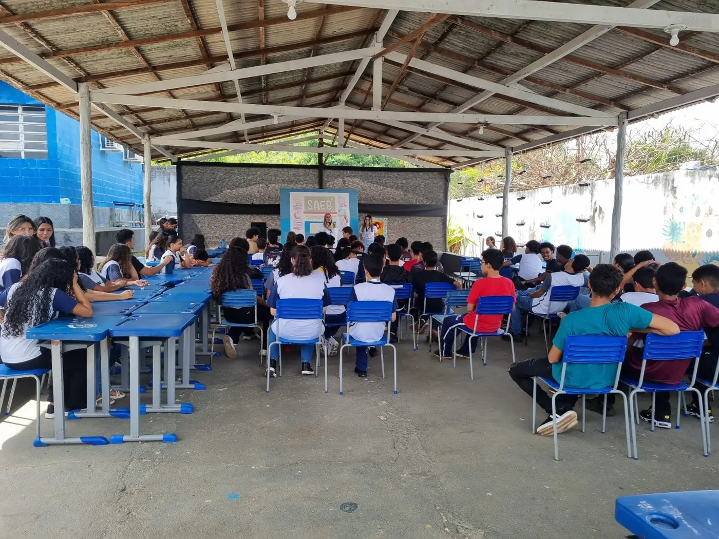 Alunos da Escola Municipal de Ensino Fundamental Professora Maria Sylvia dos Santos participaram de palestra e dinâmicas sobre saúde mental realizadas por uma psicóloga