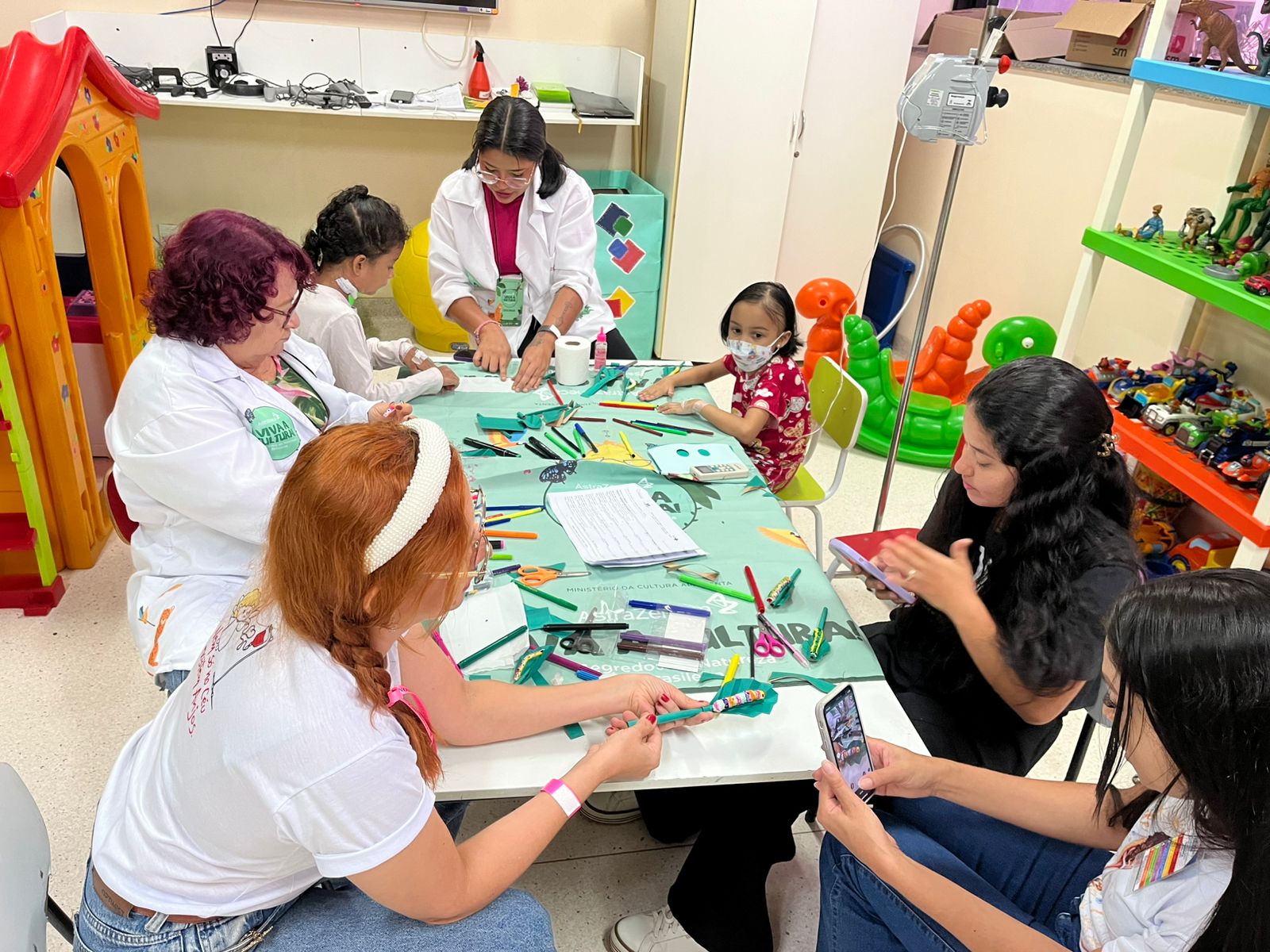Durante a semana, as atividades incluíram oficinas de musicalização com instrumentos recicláveis, pinturas inspiradas nos biomas brasileiros, criação de máscaras folclóricas e origamis de animais, além de uma masterclass sobre arteterapia. Também foram realizadas apresentações teatrais e o emocionante programa “Música nos Leitos”, que levou o mascote Astro e músicos aos quartos de pacientes impossibilitados de sair das enfermarias.