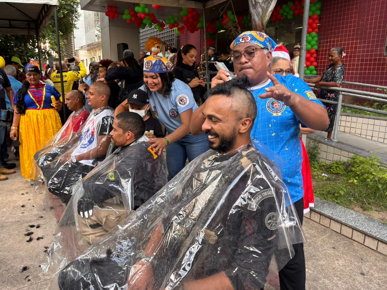 O sentimento é compartilhado pelo PRF Renan Santana. “Eu faço parte de uma polícia cidadã, que tem como um dos objetivos se aproximar da comunidade. Aqui, quando as crianças cortam o nosso cabelo, apesar de ser um gesto simbólico, é de grande valia para quem está enfrentando um tratamento difícil, longo e que mexe com a autoestima e o emocional. Então viemos mostrar apoio, interagir, trazer música, diversão e alegria para essas pequenas pessoas”, disse.