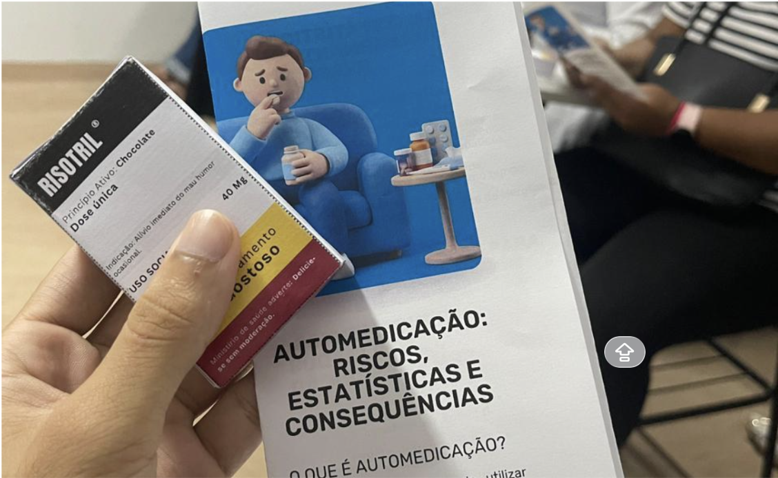 Nesta semana, a atividade foi conduzida pelo farmacêutico responsável técnico (RT) Luiz Matos, que abordou os perigos da automedicação, prática comum no cotidiano, mas que pode trazer sérias consequências à saúde. Segundo ele, “a automedicação é um risco grave e disseminado no Brasil, já que cerca de 77% da população faz uso de medicamentos por conta própria”, alertou.