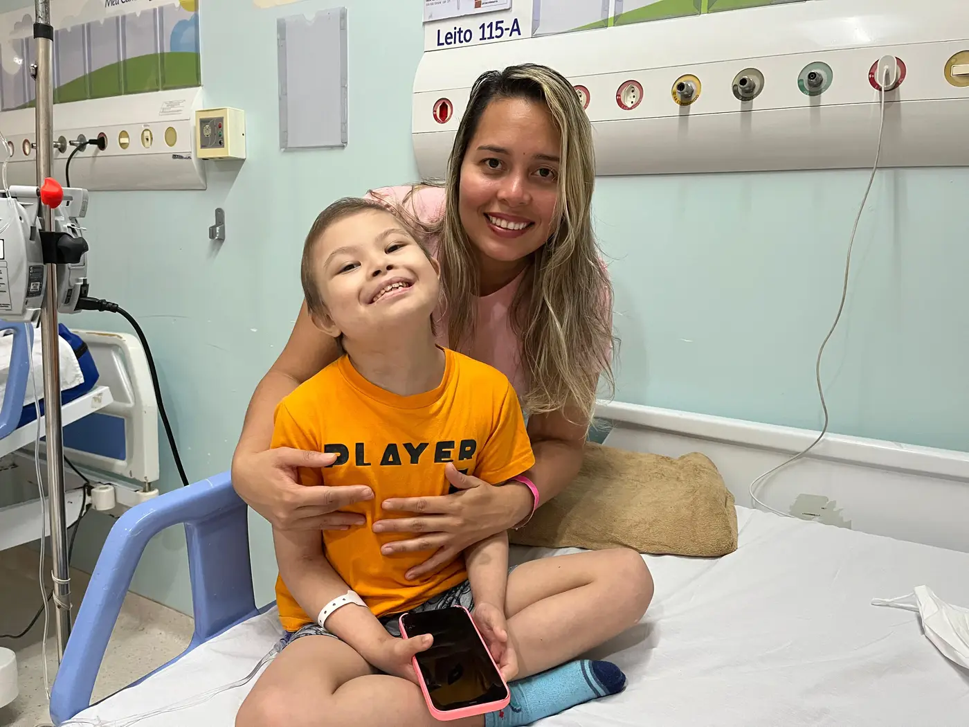 A dona de casa Elenice Fagundes, 35 anos, é mãe do Enzo Lemos, 8 anos. Ela contou que o menino apresentou palidez e vômito, sintomas que a levaram a buscar atendimento. Aos 4 anos, ele foi diagnosticado com leucemia.