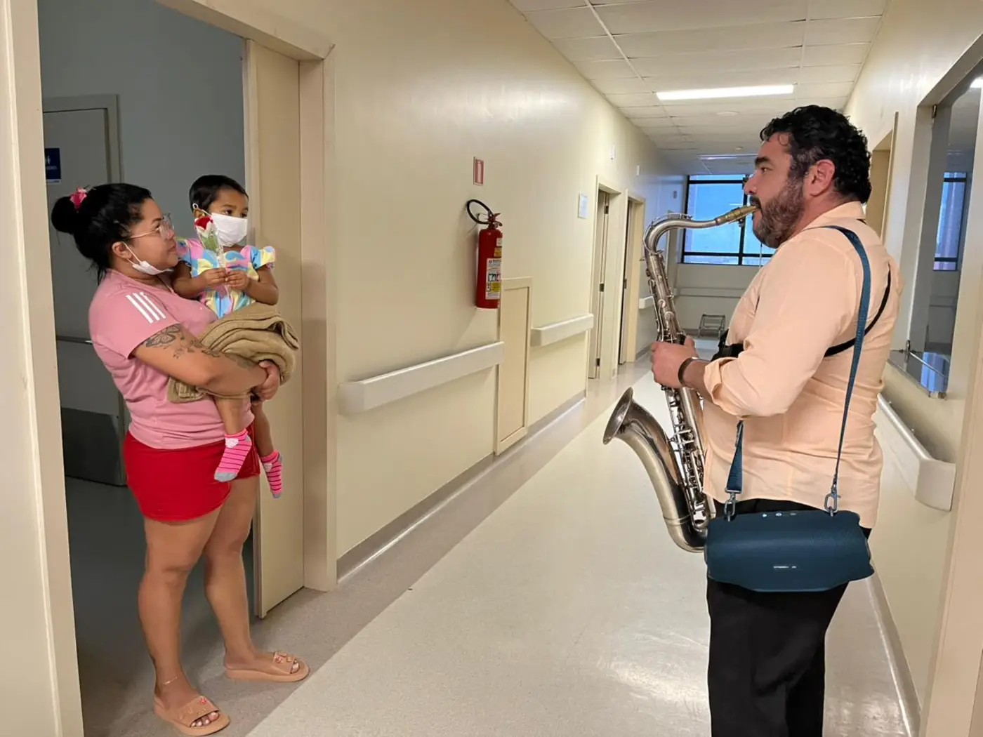 A dona de casa Dafne Lima, 22 anos, é moradora de Bonito, no nordeste paraense. Em Belém, ela acompanha a filha Cecília, de um ano, internada no Hoiol. Para a jovem, o atendimento humanizado e a atenção da equipe ajudam a enfrentar o momento de incerteza durante a investigação do diagnóstico da criança. “O hospital é bem organizado, (os colaboradores) são todos gentis, bem educados, atendem a gente muito bem. E essas ações alegres e homenagens vêm pra nos dar força para continuar confiando em Deus e acreditar que tudo vai dar certo. É um alívio”, disse.