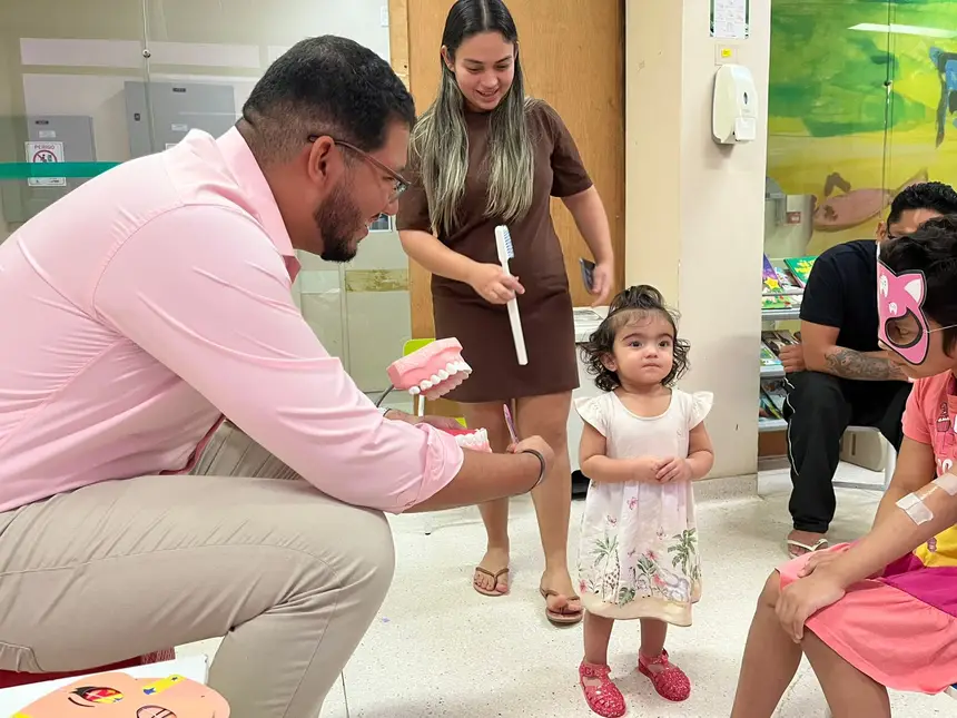 Com foco na promoção da saúde e na segurança dos pacientes, o Hospital Oncológico Infantil Octávio Lobo (Hoiol) realizou uma ação educativa voltada à importância da higiene bucal para crianças em tratamento contra o câncer. A programação, realizada na tarde desta sexta-feira (20), incluiu palestra, atividades lúdicas na brinquedoteca conduzidas pela equipe de Humanização em parceria com voluntários e a distribuição de kits de higiene oral para pacientes.