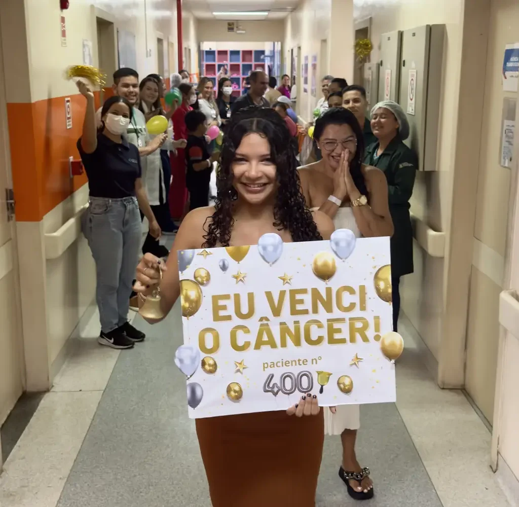 Hospital Octávio Lobo celebra 400 histórias de fé, superação e cura Quadringentésima paciente a tocar o ‘Sino da Vitória’ da unidade, Vitória Moreira, de 15 anos, comemorou a cura ao lado da mãe e de colaboradores Por Ellyson Ramos12/03/2026 17h00 Colaboradores comemoram as centenas de histórias de cura na unidade de saúde. Foto: Ellyson Ramos/Ascom Hoiol O que começou como um simples inchaço no rosto de uma menina se transformou em uma longa jornada de fé e superação. Após mais de cinco anos de tratamento e acompanhamento especializado, a estudante Vitória Moreira, de 15 anos, tornou-se a quadringentésima paciente a tocar o “Sino da Vitória” no Hospital Oncológico Infantil Octávio Lobo (Hoiol), em Belém. A celebração, realizada na tarde de quarta-feira (11), emocionou colaboradores, pacientes e acompanhantes e marcou o 400º sino tocado na unidade. Aos 15 anos, Vitória entra para a história do hospital como a paciente número 400 a tocar o “Sino da Vitória”. Foto: Ellyson Ramos/Ascom Hoiol Em 2019, Vitória tinha apenas 7 anos quando ela e a mãe, a dona de casa Keli Trindade, de 40 anos, perceberam o aumento na região da mandíbula. A suspeita inicial era papeira, infecção viral também conhecida como caxumba, que provoca inflamação das glândulas salivares. “Mas, com o tempo, o inchaço foi aumentando e comecei a sentir que poderia ser algo mais sério”, recordou a mãe. Ao lado da mãe, Keli Trindade, Vitória toca o “Sino da Vitória” e celebra a cura após anos de tratamento no Hospital Octávio Lobo. Foto: Ellyson Ramos/Ascom Hoiol Determinada a entender o que motivou a alteração no rosto da filha, Keli procurou um especialista, que identificou a presença de três nódulos. Vitória passou por uma série de exames e, em cerca de três meses, um novo nódulo surgiu, desta vez, próximo ao olho direito. Após a biópsia, a criança foi diagnosticada com uma doença linfoproliferativa e encaminhada para o Hoiol. “Eu morava em Igarapé-Açu (município localizado no nordeste paraense) e fui descobrir o que era a doença e como seria o tratamento quando cheguei ao Hospital Octávio Lobo”, afirmou a dona de casa. Os médicos Fabíola Puty e Antônio Morerira celebram o sucesso do tratamento. Foto: Ellyson Ramos/Ascom Hoiol O diagnóstico marcou o início de um período desafiador para a família. Logo no começo do tratamento, Keli precisou reorganizar completamente a vida pessoal e profissional para acompanhar a filha nas consultas e sessões de quimioterapia. A rotina intensa acabou contribuindo para o fim do relacionamento com o pai da menina. “Precisei mudar tudo. Minha prioridade era apoiar minha filha e estar com ela no hospital. Isso gerou muitos conflitos, e decidi seguir sozinha para preservar a tranquilidade dela. Meu maior medo era o de não ser suficiente, mas, desde o início, Deus estava presente”, contou. A cerimônia do Sino representa o fim de uma jornada e o começo de um novo capítulo na vida de crianças e adolescentes que receberam a alta definitiva. Foto: Ellyson Ramos/Ascom Hoiol No Hospital, Keli afirma ter encontrado o acolhimento de que precisava. Colaboradores e outras mães de pacientes se tornaram uma rede de apoio durante o tratamento. Entre os profissionais que marcaram a trajetória da família está a médica Fabiola Puty, que acompanhou o caso e deu a notícia da cura, celebrando também o marco dos 400 sinos tocados na unidade. “Quero parabenizar a todos por tanto trabalho, amor e dedicação. Essas altas só foram possíveis porque todos nós formamos um grupo lindo, cheio de gás e amor aos pequenos. Parabéns e muito obrigada por tanto”, afirmou a oncopediatra. Equipe multiprofissional participa da celebração que marca 400 histórias de cura na unidade. Foto: Ellyson Ramos/Ascom Hoiol Durante o tratamento, Vitória também fez amizade com outras crianças e enfrentou o adoecimento com determinação. O início da quimioterapia, no entanto, foi um dos momentos mais difíceis para mãe e filha. Keli lembra da preocupação com alguns efeitos. “Ela sentia muito sono, tinha vômitos e dores. Mesmo assim, sempre demonstrou muita força. Minha filha é carinhosa, obediente e muito forte”, disse a genitora orgulhosa. Para distrair, a menina desenhava, pintava e fazia pulseirinhas de miçangas. “Foi a forma que ela encontrou para enfrentar o momento”, ressaltou a mãe. Colaboradores celebram o sucesso do tratamento da quadringentésima paciente a tocar o Sino da Vitória no Hospital Octávio Lobo. Foto: Ellyson Ramos/Ascom Hoiol Marco – A cerimônia do “Sino da Vitória” reúne etapas cheias de simbolismos, como o desfile com a placa comemorativa, o toque do sino e o carimbo da mão na “Árvore da Vida”. Para acompanhantes e pacientes que ainda estão em tratamento, o momento costuma ser de muita emoção. E por trás de cada conquista, está o trabalho dedicado de profissionais que acompanham de perto a trajetória de pacientes e familiares ao longo de todo o processo. Uma dessas colaboradoras é a assistente do Escritório de Experiência do Paciente (EEP), Elizabeth Cabeça, que há 10 anos presencia e compartilha histórias de superação e cura na unidade. Para carimbar o mural da Árvore da Vida, Vitória teve a mão pintada pela mãe. Foto: Ellyson Ramos/Ascom Hoiol Para a assistente, chegar ao marco dos 400 sinos tocados e fazer parte da trajetória de centenas de pessoas é motivo de gratidão. “É fantástico pensar que participei disso e que conheci cada criança que tocou esse sino. Eu costumo dizer que fiquei com a melhor parte, a de anunciar boas novas”, disse emocionada. Beth, como é carinhosamente chamada por todos, resume o sentimento que permanece após cada badalar do sino do Hoiol. “É a sensação de dever cumprido, uma tarefa concluída com sucesso, pois quando uma criança ou adolescente toca o ‘Sino da Vitória’, quem está iniciando o
